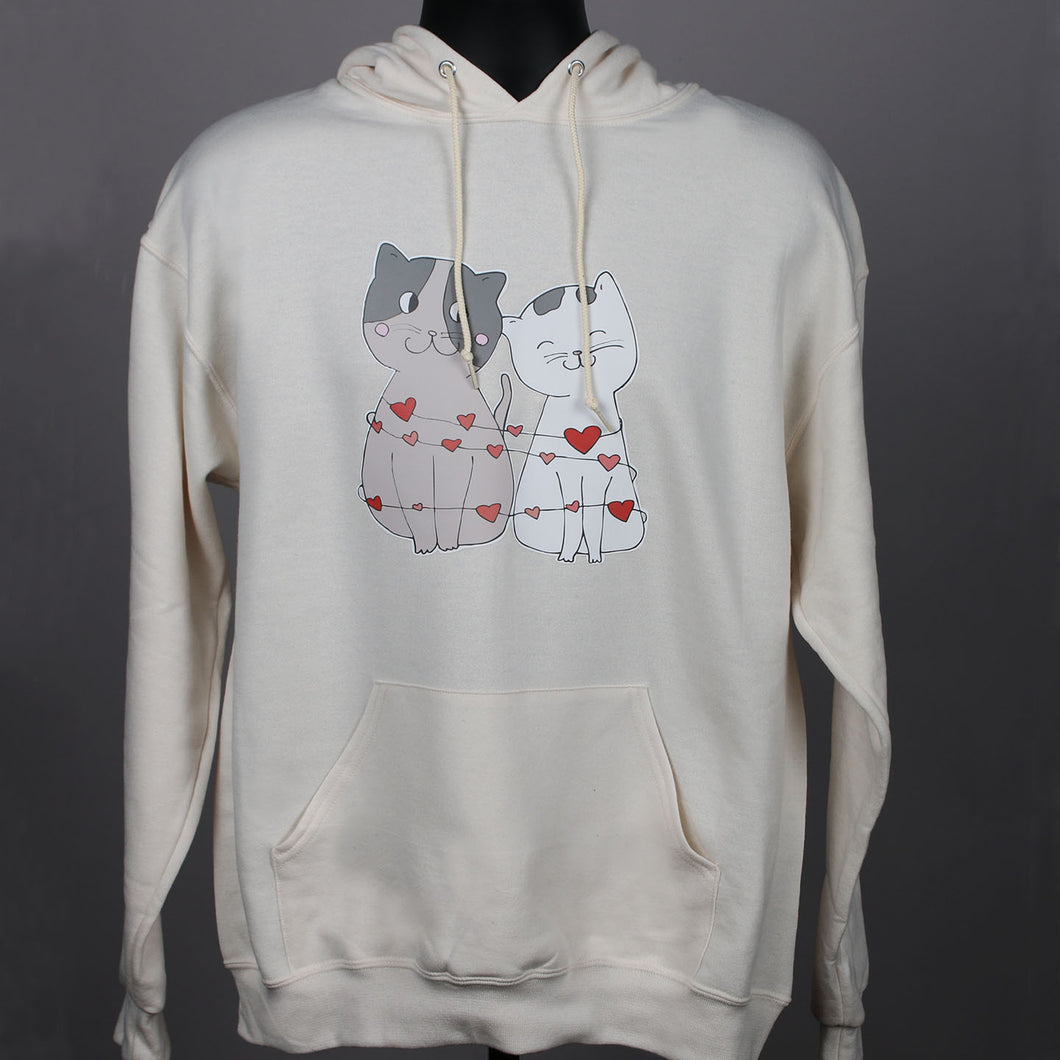 Sitting close together, they symbolize connection, affection, and the unbreakable bonds we share which makes it the “purr-fect” hoodie for the season of love.